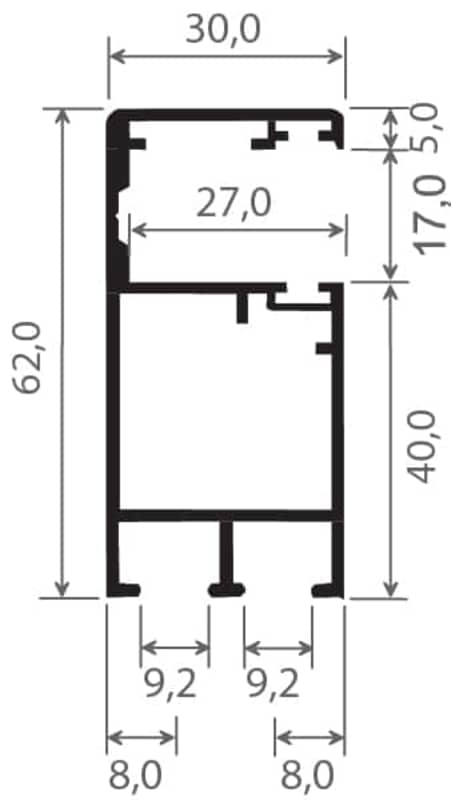ALU Rollladenführung 62x30 mm Lg. 6,50 m Braun ähnlich RAL 8019, VE: 13 m