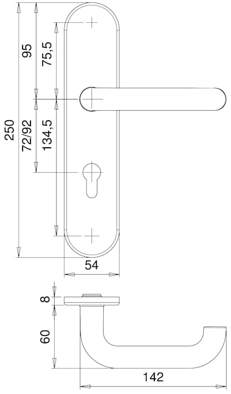 Vollblatt Sicherheits-Drückergarnitur Lima 8759/9203,Langschild,ES 0,ohne Zylinderabdeckung 92/10,DIN Links-Rechts,naturfarben eloxiert,Türstärke65-75,U-Form/U-Form