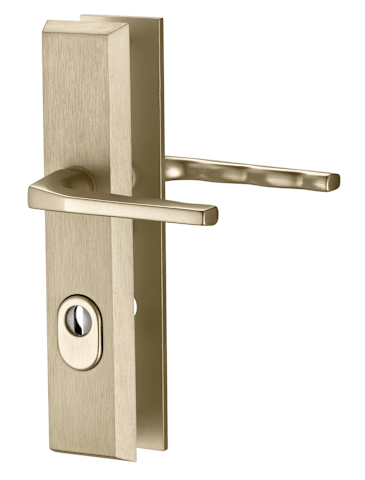 Vollblatt Sicherheits-Drückergarnitur Alpha 8747,Langschild,ES 1,mit Zylinderabdeckung 72/8,DIN Links-Rechts,bronzefarben eloxiert,Türstärke35-45,Fingerform gekröpft/Fingerform gekröpft