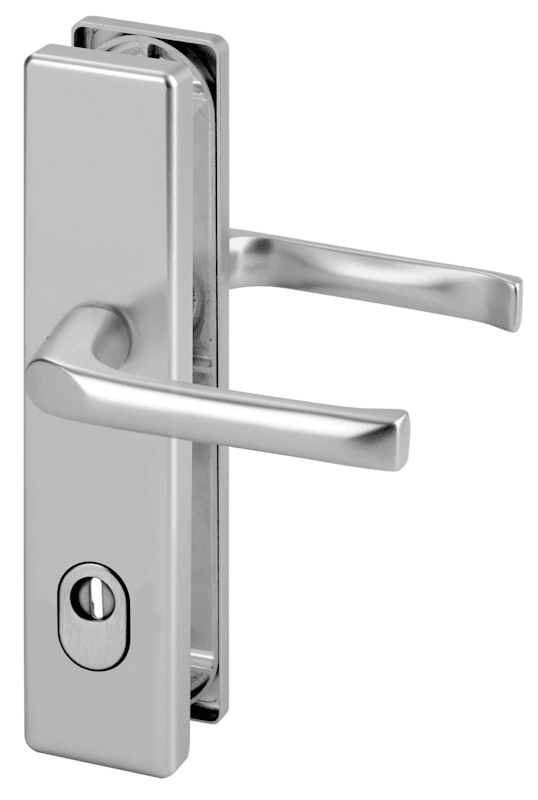 Vollblatt Sicherheits-Drückergarnitur Juno 8752/7203,Langschild,ES 1,mit Zylinderabdeckung 72/8,DIN Links-Rechts,naturfarben eloxiert,Türstärke35-45,gekröpft/gekröpft