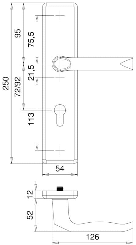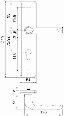 Vollblatt Sicherheits-Drückergarnitur Juno 8750/9203,Langschild,ES 1,ohne Zylinderabdeckung 92/10,DIN Links-Rechts,neusilberfarben eloxiert,Türstärke65-75,gekröpft/gekröpft