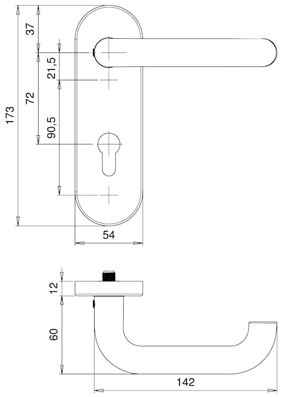 Vollblatt Sicherheits-Drückergarnitur Logo 8713/7203,Kurzschild,ES 1,ohne Zylinderabdeckung 72/8,DIN Links-Rechts,naturfarben eloxiert,Türstärke35-45,U-Form/U-Form