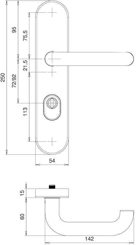 Vollblatt Sicherheits-Drückergarnitur Logo 8755/7203,Langschild,ES 1,mit Zylinderabdeckung 72/8,DIN Links-Rechts,bronzefarben eloxiert,Türstärke35-45,U-Form/U-Form