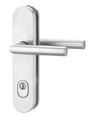 Vollblatt Sicherheits-Drückergarnitur Logo 8745/9203,Langschild,ES 1,mit Zylinderabdeckung 92/10,DIN Links-Rechts,naturfarben eloxiert,Türstärke65-75,Gehrung/Gehrung
