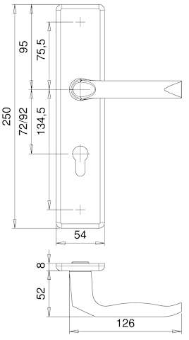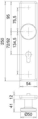 Vollblatt Sicherheits-Wechselgarnitur Lana 8756/0772,Langschild,ES 0,ohne Zylinderabdeckung 72/8,DIN Links-Rechts,neusilberfarben eloxiert,Türstärke35-45,rund/gekröpft fest