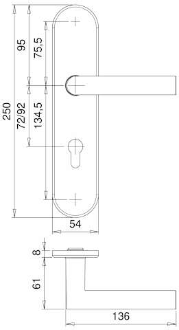 Vollblatt Sicherheits-Wechselgarnitur Lima 8760/0772,Langschild,ES 0,ohne Zylinderabdeckung 72/8,DIN Links-Rechts,naturfarben eloxiert,Türstärke35-45,rund/L-Form fest