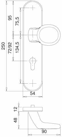 Vollblatt Sicherheits-Wechselgarnitur Lima 8760/0292,Langschild,ES 0,ohne Zylinderabdeckung 92/10,DIN Links-Rechts,naturfarben eloxiert,Türstärke65-75,gekröpft/L-Form fest