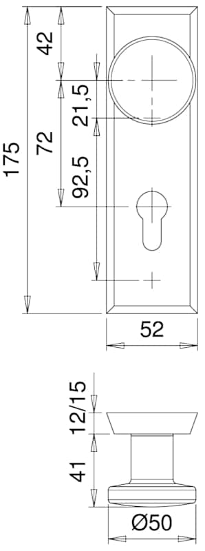 Vollblatt Sicherheits-Wechselgarnitur Rondo 8627,Kurzschild,ES 0,ohne Zylinderabdeckung 72/8,DIN Links-Rechts,naturfarben eloxiert,Türstärke35-45,rund/Fingerform gekröpft fest
