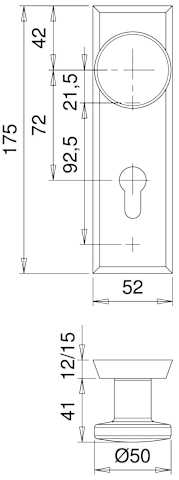 Vollblatt Sicherheits-Wechselgarnitur Rondo 8627,Kurzschild,ES 0,ohne Zylinderabdeckung 72/8,DIN Links-Rechts,neusilberfarben eloxiert,Türstärke35-45,rund/Fingerform gekröpft fest