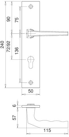 Vollblatt Sicherheits-Wechselgarnitur Rondo 7624,Langschild,ES 0,ohne Zylinderabdeckung 72/8,DIN Links-Rechts,bronzefarben eloxiert,Türstärke35-45,eckig/Fingerform gekröpft fest