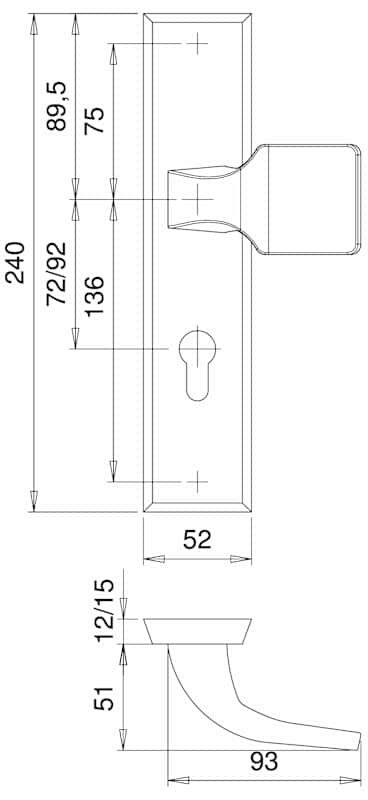 Vollblatt Sicherheits-Wechselgarnitur Rondo 7625,Langschild,ES 0,ohne Zylinderabdeckung 92/10,DIN Links-Rechts,bronzefarben eloxiert,Türstärke65-75,eckig/Fingerform gekröpft fest