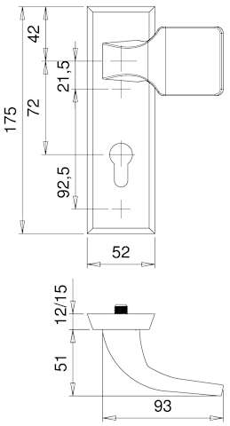 Vollblatt Sicherheits-Wechselgarnitur Alpha 7672,Kurzschild,ES 1,ohne Zylinderabdeckung 72/8,DIN Links-Rechts,bronzefarben eloxiert,Türstärke35-45,gekröpft/Fingerform gekröpft fest