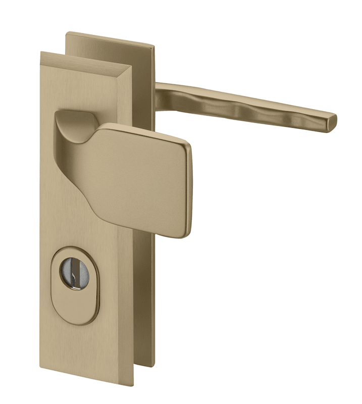 Vollblatt Sicherheits-Wechselgarnitur Alpha 7651,Kurzschild,ES 1,mit Zylinderabdeckung 72/8,DIN Links-Rechts,bronzefarben eloxiert,Türstärke35-45,gekröpft/Fingerform gekröpft fest
