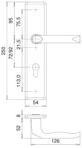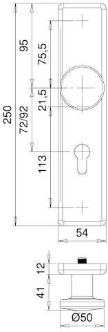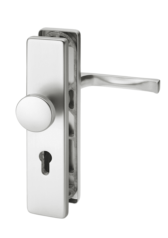 Vollblatt Sicherheits-Wechselgarnitur Juno 8750/0772,Langschild,ES 1,ohne Zylinderabdeckung 72/8,DIN Links-Rechts,naturfarben eloxiert,Türstärke35-45,rund/gekröpft fest