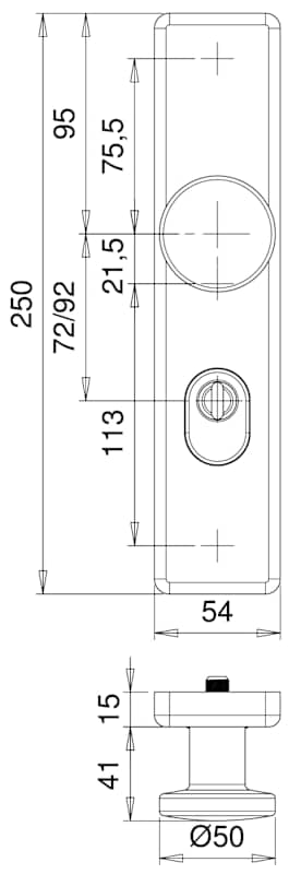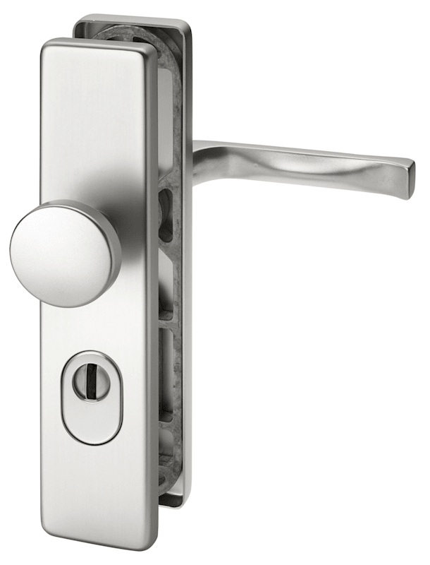 Vollblatt Sicherheits-Wechselgarnitur Juno 8752/0772,Langschild,ES 1,mit Zylinderabdeckung 72/8,DIN Links-Rechts,naturfarben eloxiert,Türstärke35-45,rund/gekröpft fest