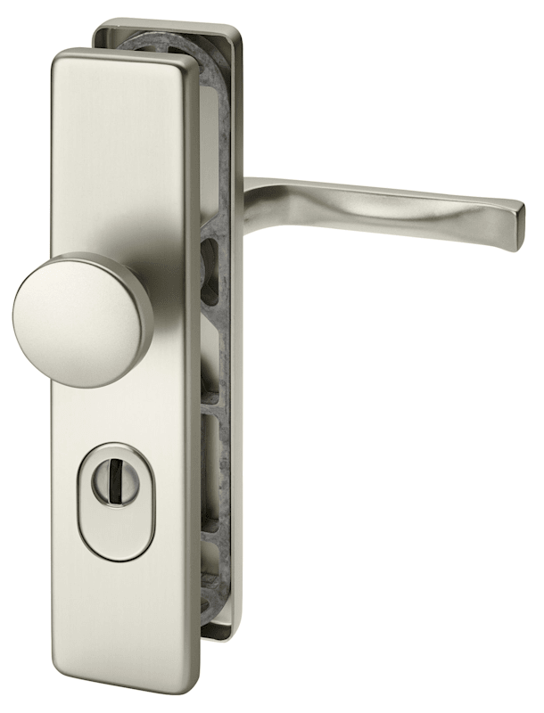 Vollblatt Sicherheits-Wechselgarnitur Juno 8752/0772,Langschild,ES 1,mit Zylinderabdeckung 72/8,DIN Links-Rechts,neusilberfarben eloxiert,Türstärke35-45,rund/gekröpft fest