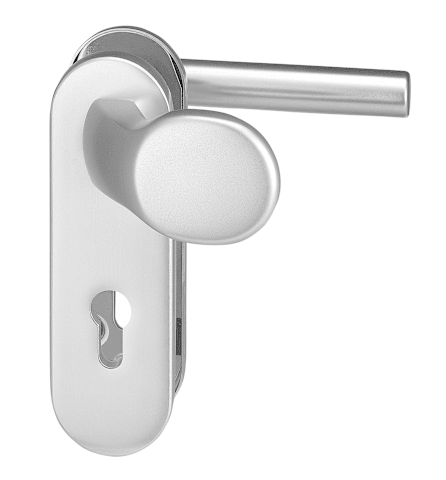 Vollblatt Sicherheits-Wechselgarnitur Logo 8793/0272,Kurzschild,ohne Zylinderabdeckung 72/8,DIN Links-Rechts,naturfarben eloxiert,Türstärke35-45,gekröpft/Gehrung fest