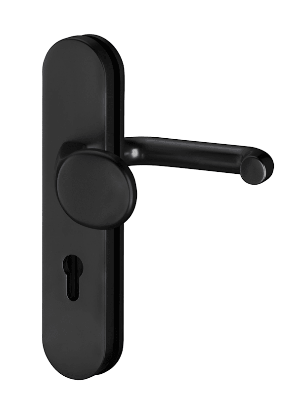 Vollblatt Sicherheits-Wechselgarnitur Logo 8753/0272,Langschild,ES 1,ohne Zylinderabdeckung 72/8,DIN Links-Rechts,tiefschwarz beschichtet,Türstärke35-45,gekröpft/U-Form fest