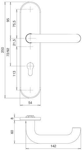 Vollblatt Sicherheits-Wechselgarnitur Logo 8753/0772,Langschild,ES 1,ohne Zylinderabdeckung 72/8,DIN Links-Rechts,stahlfarbig eloxiert,Türstärke35-45,rund/U-Form fest