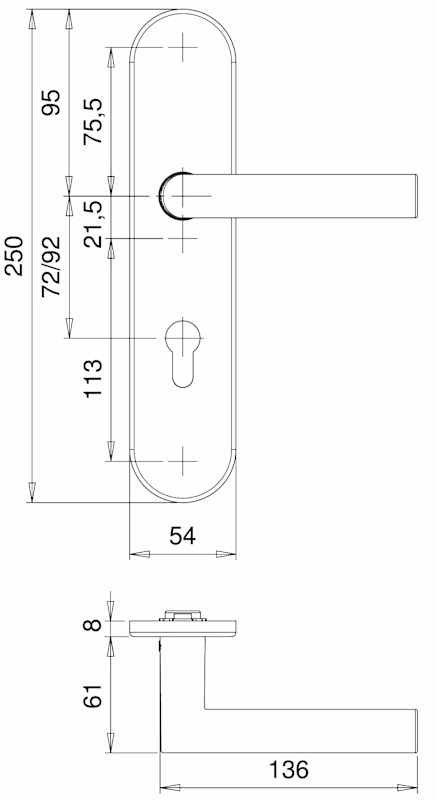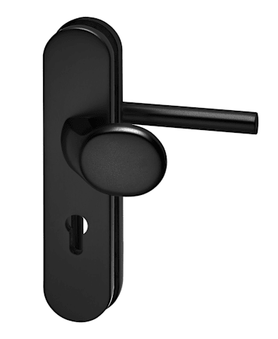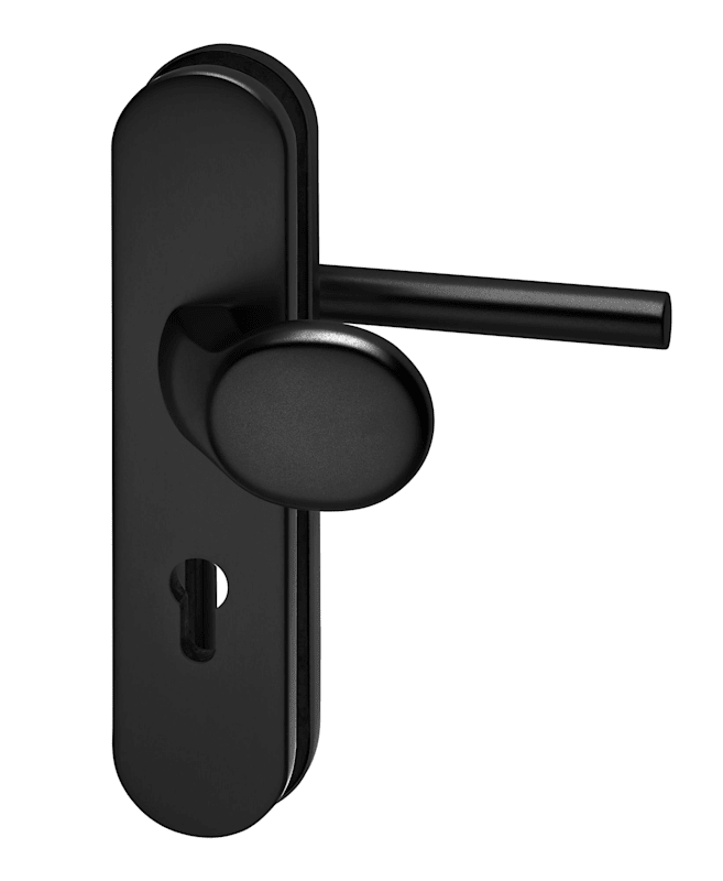 Vollblatt Sicherheits-Wechselgarnitur Logo 8743/0272,Langschild,ES 1,ohne Zylinderabdeckung 72/8,DIN Links-Rechts,tiefschwarz beschichtet,Türstärke35-45,gekröpft/L-Form fest
