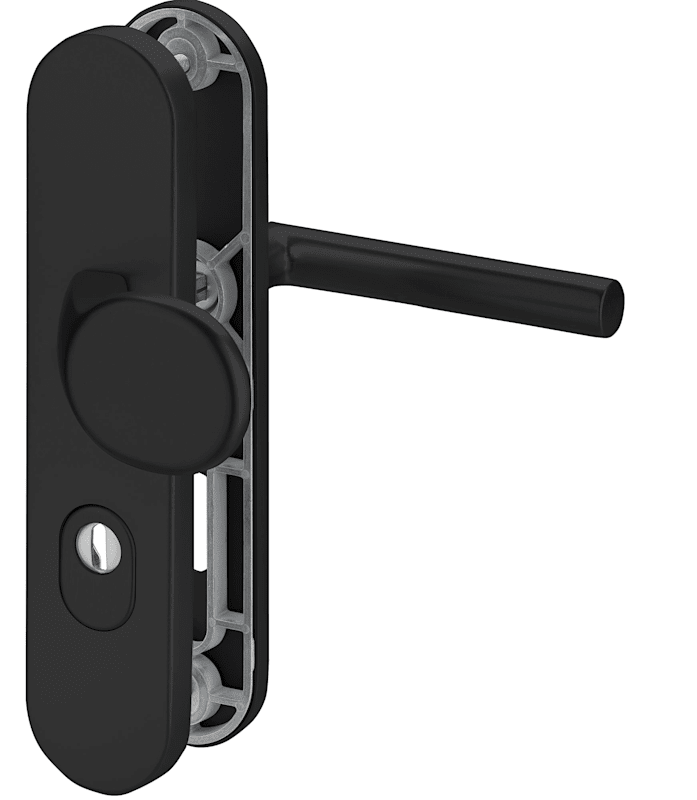 Vollblatt Sicherheits-Wechselgarnitur Logo 8745/0272,Langschild,ES 1,mit Zylinderabdeckung 72/8,DIN Links-Rechts,tiefschwarz beschichtet,Türstärke35-45,gekröpft/L-Form fest