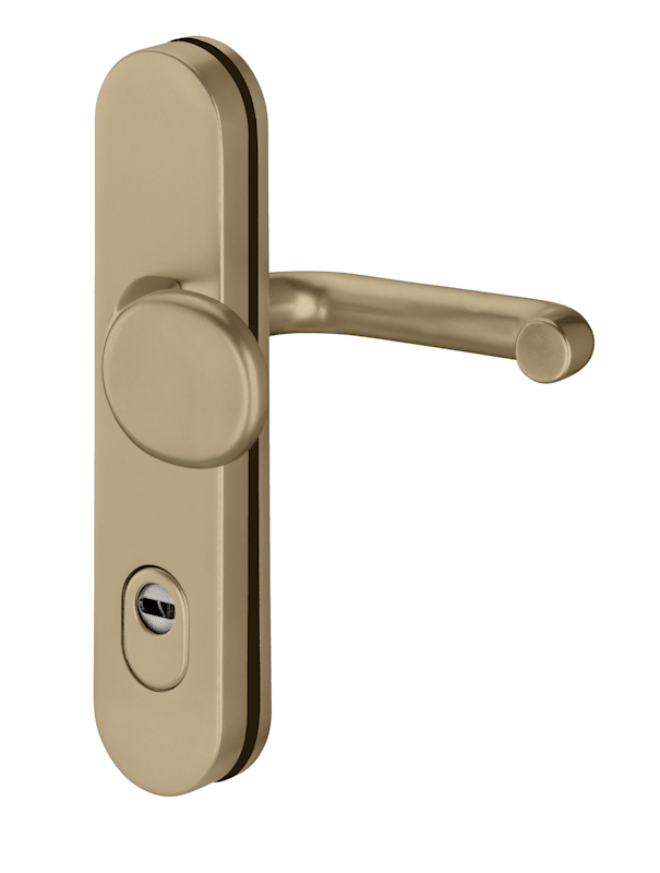 Vollblatt Sicherheits-Wechselgarnitur Logo 8755/0292,Langschild,ES 1,mit Zylinderabdeckung 92/10,DIN Links-Rechts,bronzefarben eloxiert,Türstärke65-75,gekröpft/U-Form fest