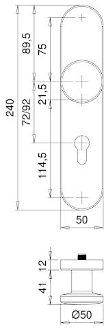 Vollblatt Sicherheits-Wechselgarnitur Rombus 8612/7203,Langschild,ES 1,ohne Zylinderabdeckung 72/8,DIN Links-Rechts,naturfarben eloxiert,Türstärke35-45,rund/U-Form fest