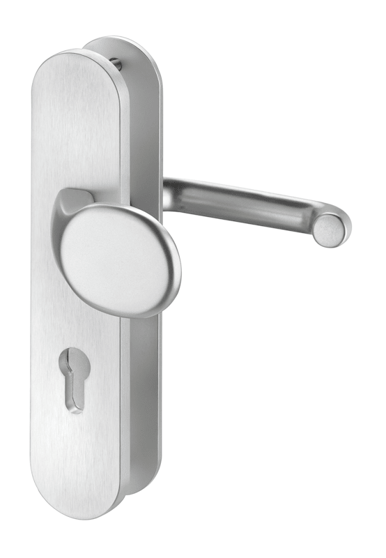 Vollblatt Sicherheits-Wechselgarnitur Rombus 8685/9203,Langschild,ES 1,ohne Zylinderabdeckung 92/10,DIN Links-Rechts,naturfarben eloxiert,Türstärke65-75,gekröpft/U-Form fest
