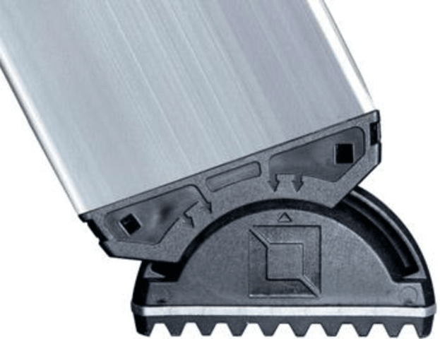Stufen-Stehleiter, beidseitig begehbar • Material: Aluminium • Hohe Standsicherheit: konische Bauweise mit 4-fach verschraubtes Aluminium-Leitergelenk • Stufen-Holm-Verbindungen: dauehaft • Spreizsicherung: mit 2 hochfesten Perlongurten • Mit rutschfesten nivello®-Leiterschuhe • Mit ergo-pad®-Griffzone • Stufen: 80 mm tief, geriffelt • Stufenabstand: 235 mm • Leiterneigung: 70° • Belastung: max. 150 kg • Geprüfte Sicherheit: Bauart-geprüft, entspricht DIN EN 131, BetrSichV, TRBS 2121, DGUV Information 208-016 und geltendem DGUV Regelwerk