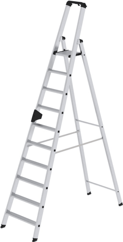 ALU-STUFEN-STEHLEITER EINSEITIG BEGEHBAR 10 STUFEN MIT BRÜCKE 40110