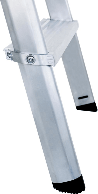 Stufen-Stehleiter ML, einseitig begehbar, eloxiert • Material: Aluminium, extrem abrieb- und kratzfest • Hohe Standsicherheit: konische Bauweise, mit 4-fach vernieteten Leitergelenken • Stufen-Holm-Verbindungen: dauehaft fest verschraubt • Großflächige Standplattform: geriffelt – für ein sicheres Arbeiten • Mit rutschfesten Leiterschuhen • Mit integrierter Ablageschale • Stufen: 80 mm tief, geriffelt • Stufenabstand: 235 mm • Leiterneigung: 70° • Belastung: max. 150 kg