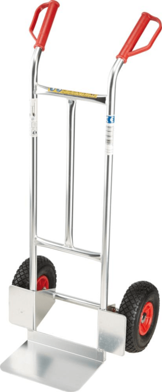 Alu-Transportkarre• Material: verschweißte, stabile Alurohrkonstruktion • Sicherheitsgriffe: aus hochfestem Kunststoff • Luftbereifung: mit Stollenprofil • Mit Kunststofffelge und Kugellager Hinw