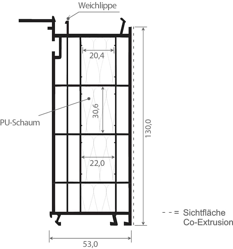 Aluplast-Bodeneinstand 130 mm Lg. 6,00 m Weiß, mit WL, mittlere Kammer ausgeschäumt für 8000er, VE: 12 m