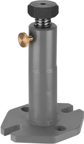 Schraubbock, schwer• Vergütungsstahl mit Trapezgewinde • Spindelkopf brüniert • Grundkörper aus Vergütungsstahl, mit Endsicherung • Zentrierloch-Ø 12 mm • Spindelkopf in runder Ausführung