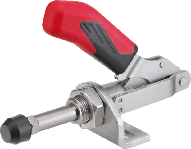 Schubstangenspanner, mit kleinem Winkelfuß• Druck- und Zugspanner (Schubstange und Handhebel gleichlaufend) • Lange Schubstangenführung mit Befestigungsgewinde und Mutter • Verzinkt, passiviert • N