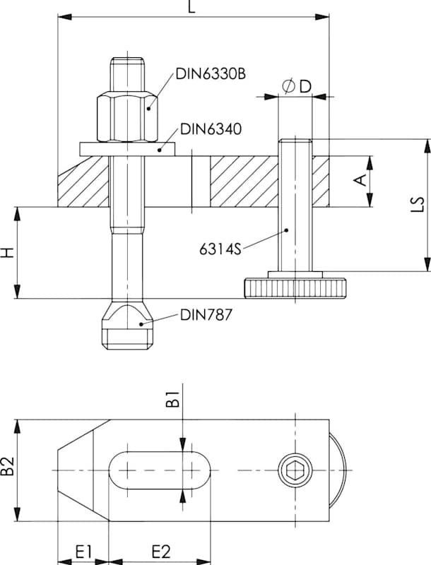 Lieferung: Mit Schrauben für T-Nuten DIN 787, Mutter und Scheibe.