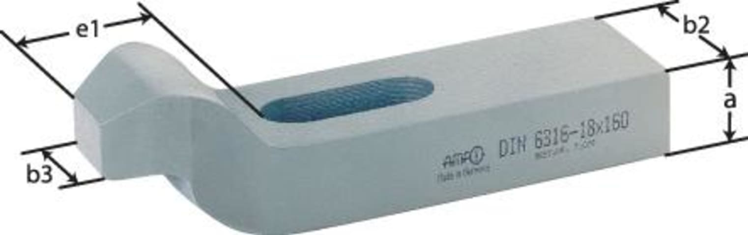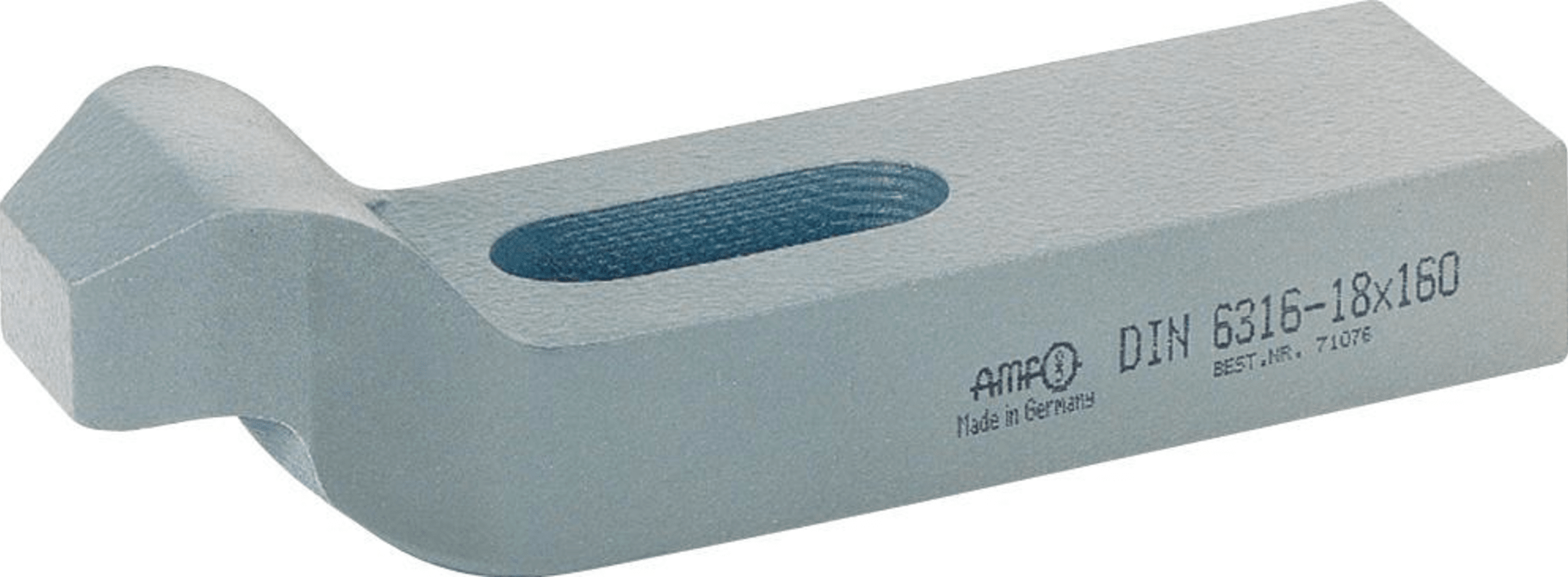 Spanneisen, gekröpft• DIN 6316 • Aus Vergütungsstahl, lackiert • Planparallele Spann- und Auflageflächen Hinweis : Spanneisen können mit verschiedenen Spannunterlagen kombiniert und dadurch unte