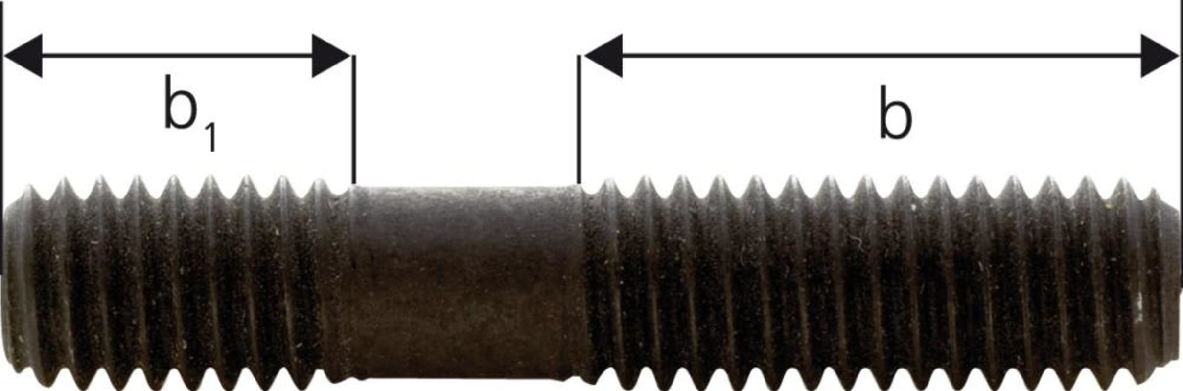 Stiftschraube DIN 6379• Gerolltes Gewinde • Speziell für Spannzwecke entwickelte Stiftschrauben, in Längenabstufungen den Normzahlen angepasst • M6–M12 vergütet auf Festigkeitsklasse 10.9; M14–M24
