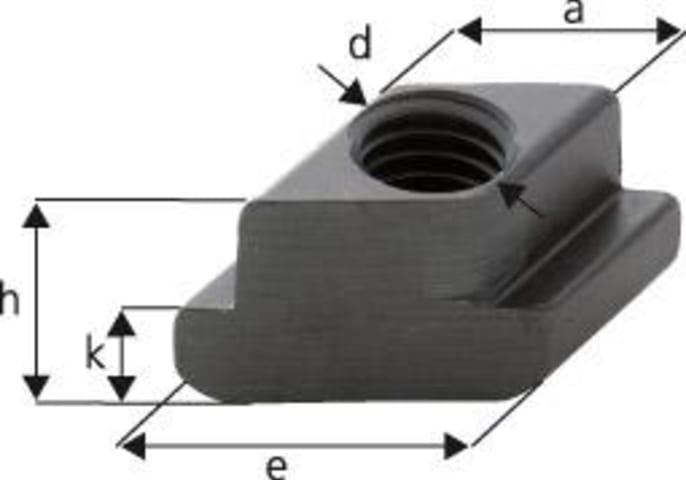T-Nutenstein Rhombus• Vergütet auf Festigkeitsklasse 6–8 • Kann von oben eingesetzt werden, wenn seitliches Einführen nicht möglich