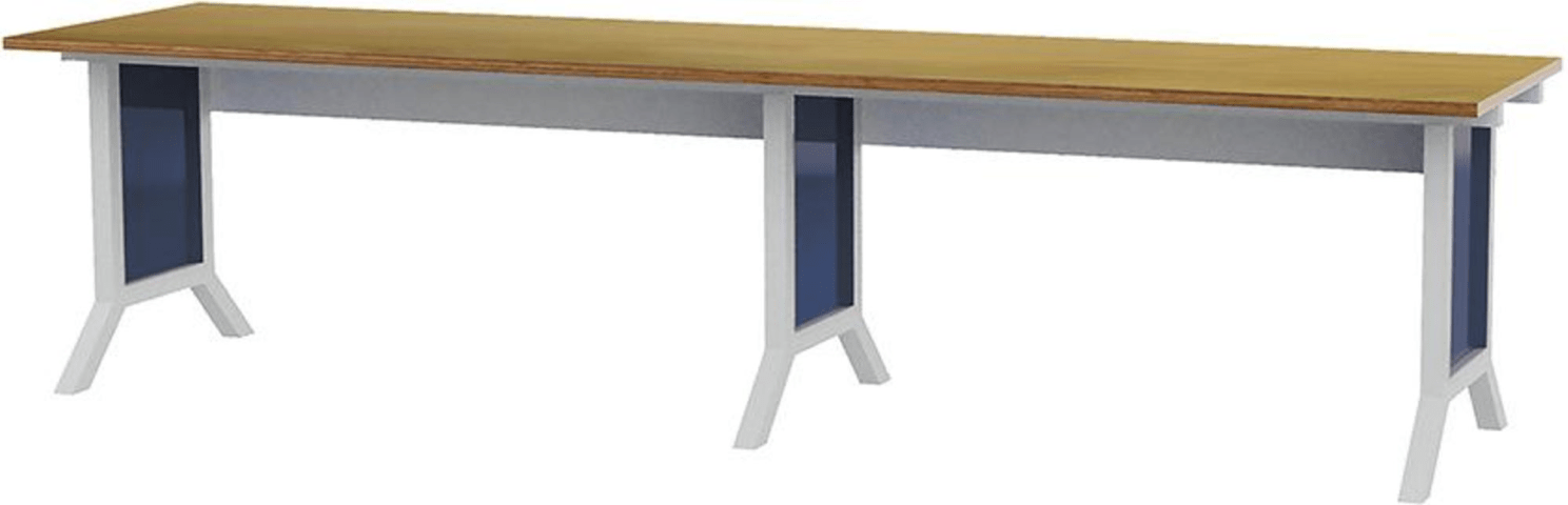 Arbeitstisch workline, 2 Arbeitsplatten • Geeignet auch als Steh-Arbeitsplatz • Stufenlose Höhenverstellung • Flexibler Einsatz: Einzelarbeitsplätze lassen sich sehr schnell zu Gruppenarbeitsplätzen erweitern • Arbeitshöhe ohne Platte: 735–1000 mm • Mit 2 Arbeitsplatten Buche Multiplex, 25 mm • Tragkraft: 180–200 kg bei gleichmäßiger Belastung je nach Höhenverstellung • Gestelle aus Stahlrohr 45 x 45 mm • Traversen aus Aluminium-Profilen 40 x 40 mm • Farbe: RAL 7035 lichtgrau/RAL 5010 enzianblau, weitere Farben auf Anfrage lieferbar Lieferung: Erfolgt unmontiert.