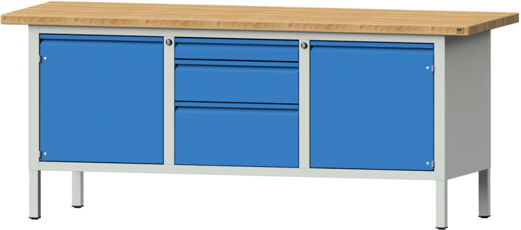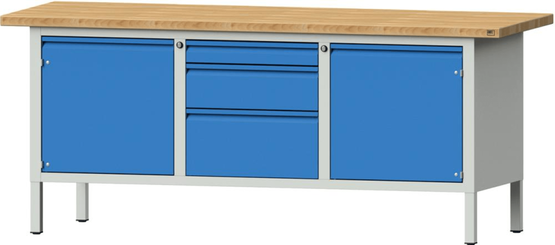 Meesenburg Artikelbezeichnung: ANKE KASTENWERKBANK 126 E 2000X700X840X 40MM 7035/5012 3 SK 2 TÜR. 999.106.0049