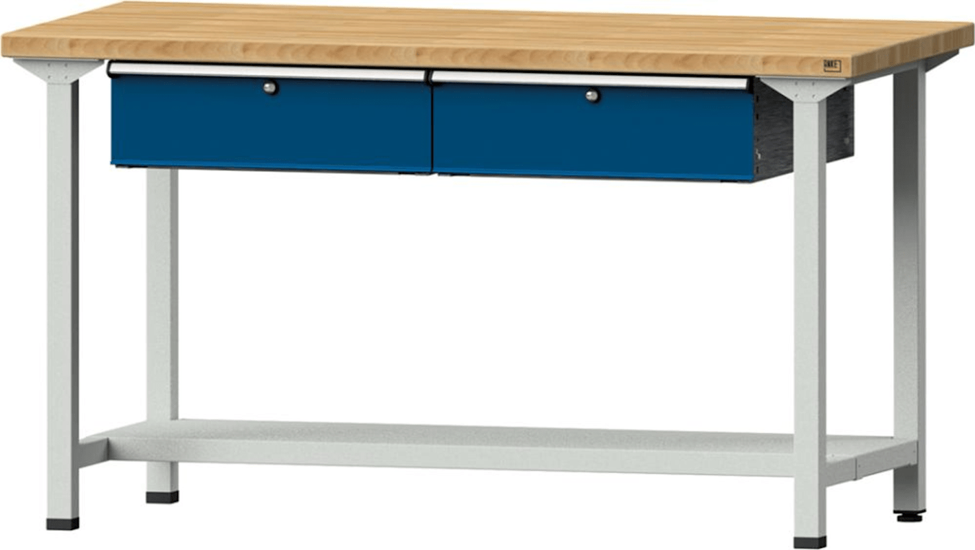 Kombiwerkbank, Serie V, mit Ablageboden• Gesamttraglast: 800 kg • Werkbankplatte: Buche massiv, längsseits riegelartig zahnverleimt, Oberfläche geölt • Füße: 4-kant-Stahlrohr, 45/45/2 mm • Schubl
