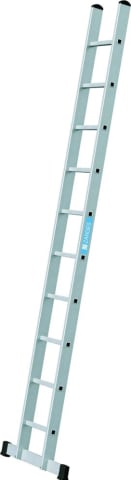 Sprossen-Anlegeleiter Alto L • Material: Aluminium • Sprossen, Holme: Alu-Strangpressprofile • Sprossen-Holm-Verbindung: hochfeste Qualitätsbördelung • Sprossen: geriffelt, 30 mm tief • Kunststoffschuhe: für rutschsicheren Stand, auswechselbar • Leiterbreite: 350 mm • Belastung: max. 150 kg • Geprüfte Sicherheit: entspricht der Norm EN 131 professional und erfüllt die Anforderungen der TRBS 2121-2 Verkehrsweg