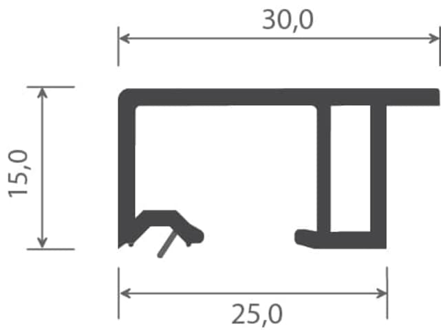 Anschluß-Profil 30 mm Lg. 6,00 m foliert, klipsbar, mit Nase, VE: 60 m 217 8007-167 NUSSBAUM [14]