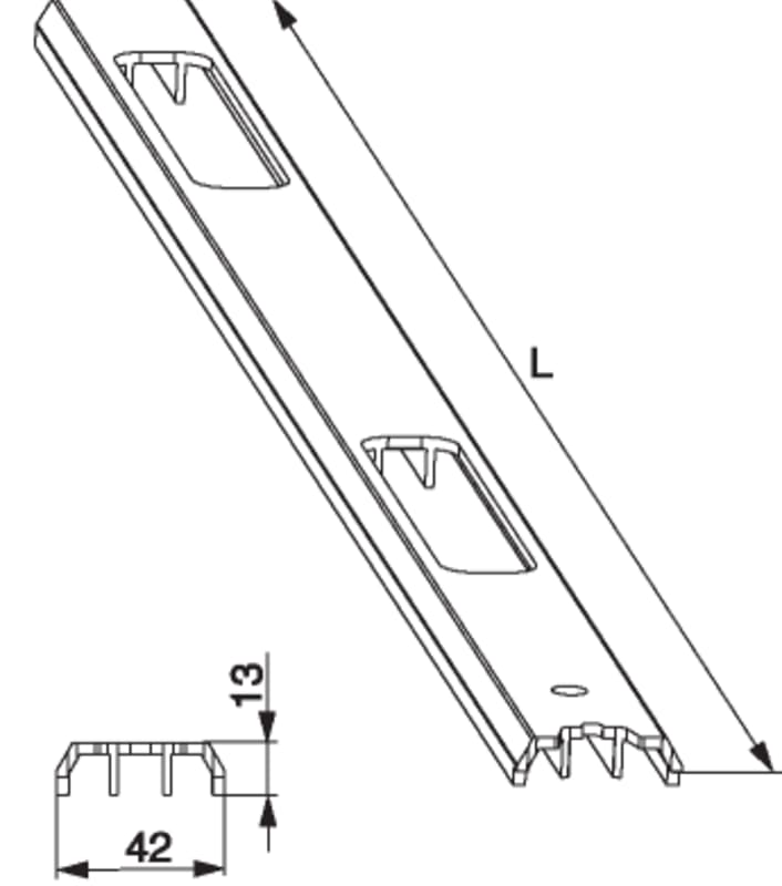 Anschlagleiste HS-ST in PVC für Hakengetriebe Gr.1 mit 2 Schließteilausfräsungen L=2.936mm lichtgrau RAL 7035