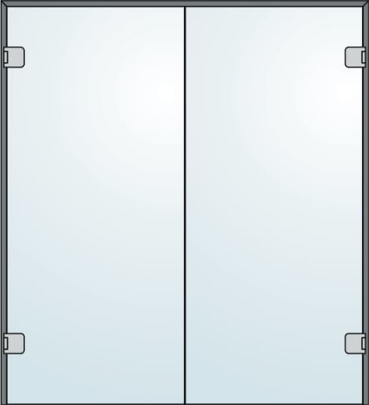 Anschlagtürzarge 6961 / 2 flg. Sondermaß, Breite bis 1800, Höhe bis 2140, nach Zeichnung, inkl. 2 Bohrungen je Seite für Bandaufnahme 6834, OHNE ZUBEHÖR, OHNE DICHTUNG, Oberfl. 74 (Classic Black elox., ähnl. RAL 9005)
