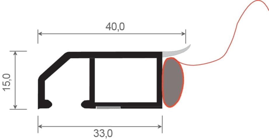 Anschluß-Profil 40 mm WL SK Lg. 6,00 m klipsbar, WL Weiß, Weiß mit Dichtband Innen, VE: 60 m