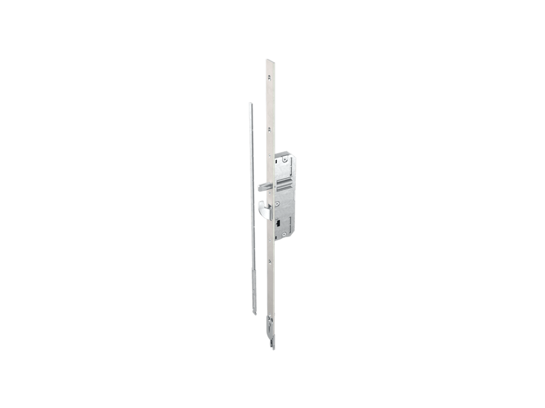 ANSCHLUSSSTULP SCHLUESSELBETAETIGT MIT RUNDBOLZEN/SCHWENKHAKEN- KOMBINATION, MIT TITAN-FEINVERZAHNUNG, 20 X 3 X 500 MM, KANTIG, MASS UNTERKANTE STULP BIS MITTE ZUSATZKASTEN = 274 MM, SILBERF. BESCH. RAL 9007, MIT ANSCHLUSSTREIBSTANGE FUER MFV BSXXXX