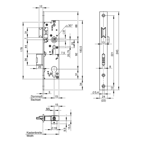 Hinweis: Türdrücker mit Hochhaltefeder (EN 179) sind zu verwenden