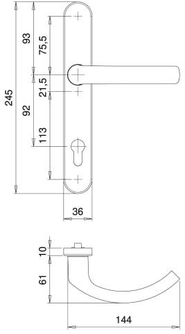 Dieckmann EST-Rahmen-1/2-Garnitur innen, DIN EN 179, Serie Kronos, 9mm VKT, 92 PZ, Innenschild mit Nocken, 2201/236 F00